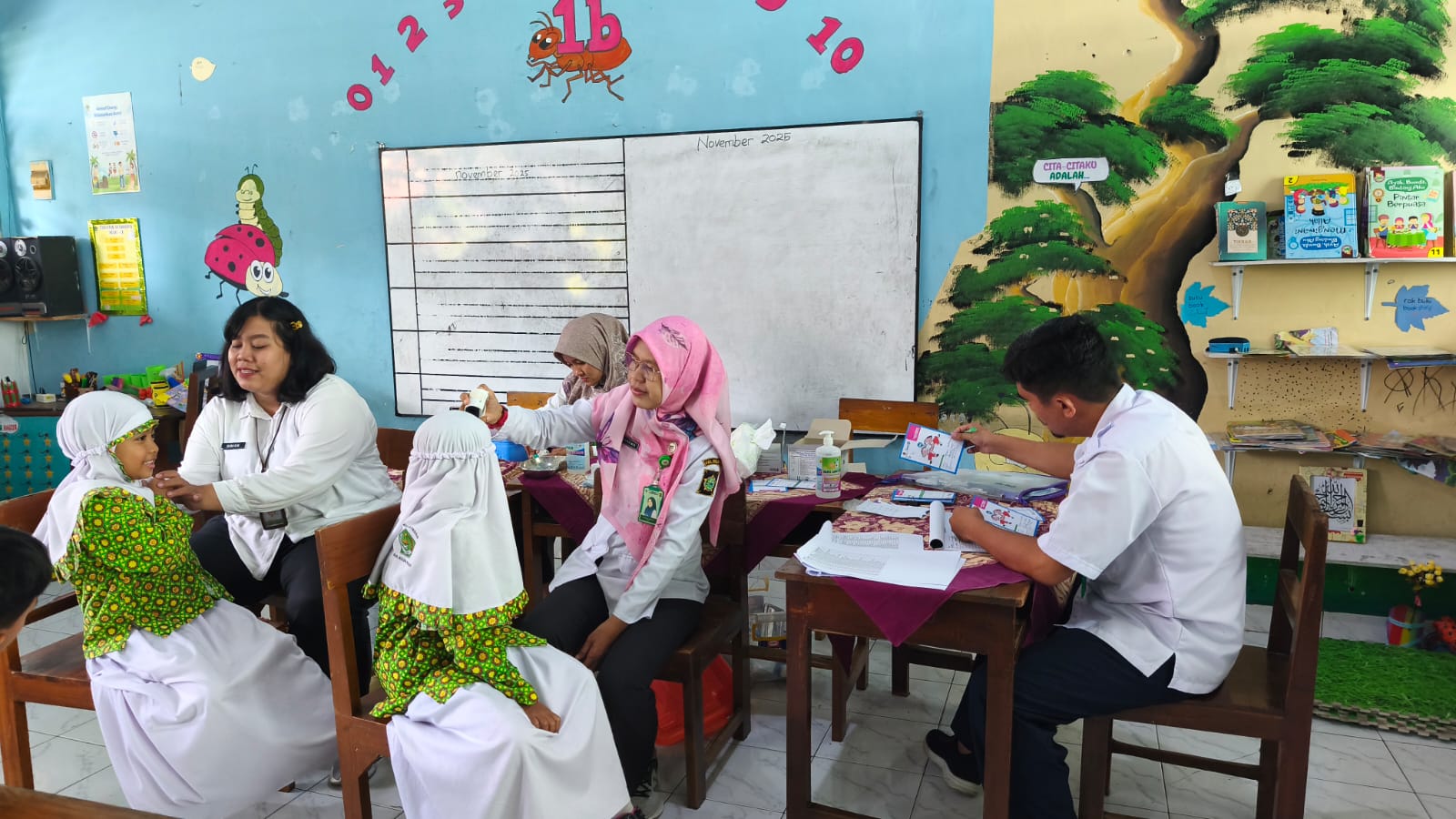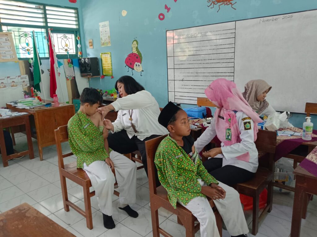 Pelaksanaan imunisasi dilakukan pada Rabu, 12 November 2025, mulai pukul 08.15 WIB di ruang kelas I B. Para siswa sebelumnya telah diingatkan untuk makan pagi dan membawa air minum guna menjaga stamina saat menerima suntikan imunisasi.