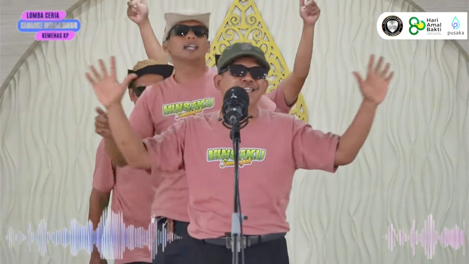 Peringatan Hari Amal Bakti (HAB) ke-80 Kementerian Agama Republik Indonesia di Kabupaten Kulon Progo berlangsung meriah. Salah satu momen yang mencuri perhatian hadir dari penampilan Kepala MIN 1 Kulon Progo, Kasmad Rifangi, M.Pd.I., yang ikut ambil bagian dalam lomba karaoke bersambung bersama Tim Gasspol MIN 1 Kulon Progo.