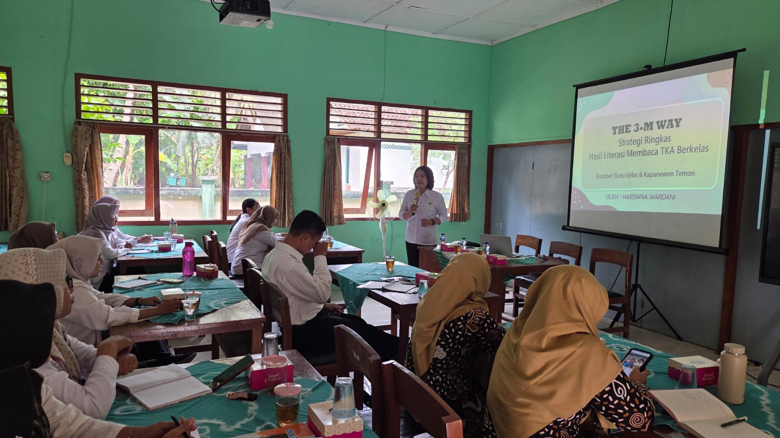 Para peserta terlihat antusias sejak awal. Karena materi yang dibahas dinilai sangat relevan dengan kebutuhan pembelajaran di kelas. Fokus utama kegiatan adalah bedah tips dan trik sukses TKA/TKAD. Khususnya pada mata pelajaran Bahasa Indonesia. Narasumber, Harsiana Wardani, M.Pd. menyampaikan materi secara jelas dan mudah dipahami, disertai contoh-contoh soal serta pembahasan strategi penyelesaiannya.