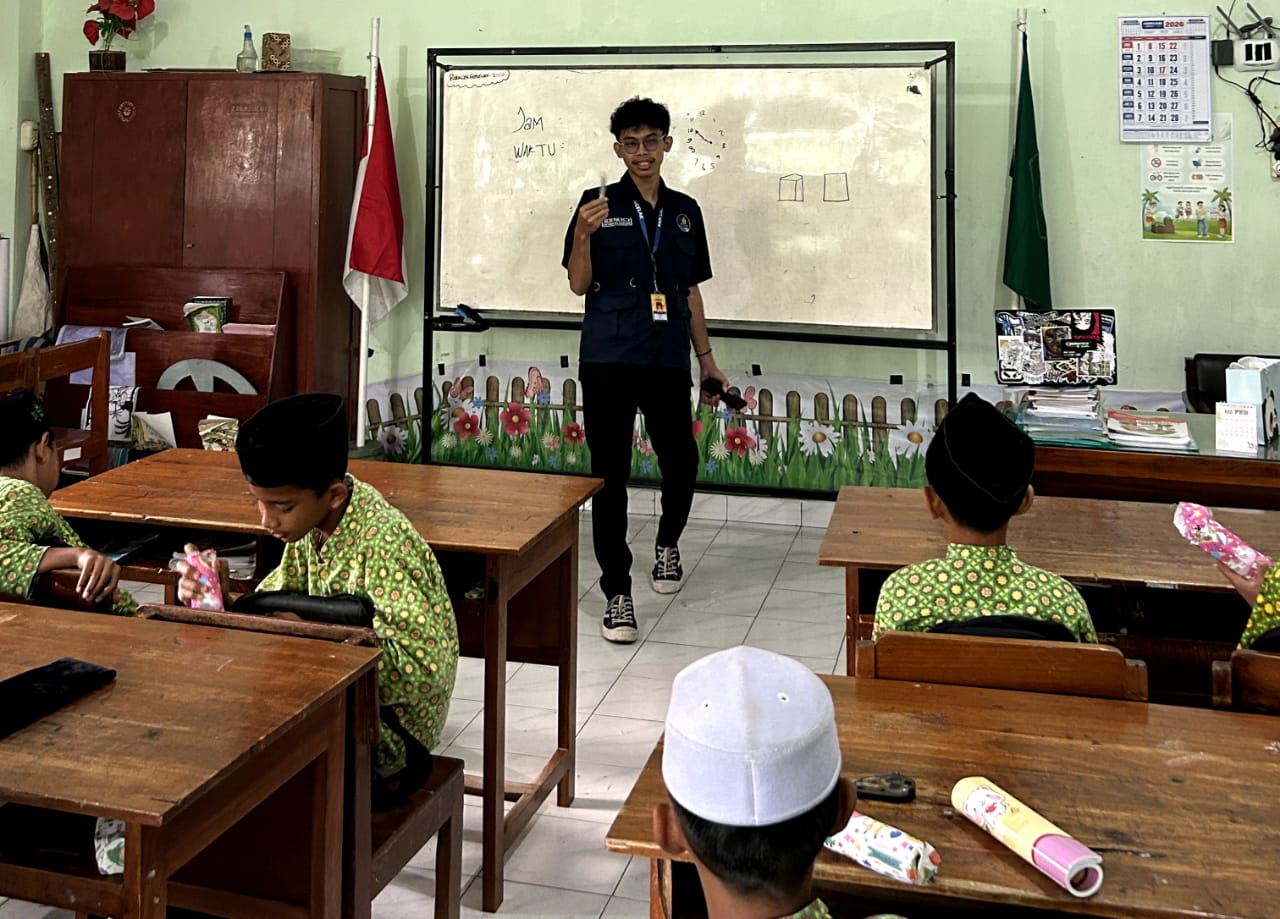 Kulon Progo – Mahasiswa Kuliah Kerja Nyata (KKN) Universitas Ahmad Dahlan Yogyakarta mengisi kegiatan pembelajaran di MIN 1 Kulon Progo. Kegiatan tersebut berlangsung Rabu (25/2/2026) di kelas V. Adapun jenis kegiatan yang mereka laksanakan di antaranya menghitung, pengenalan jam, waktu harian, dan geometri dasar.