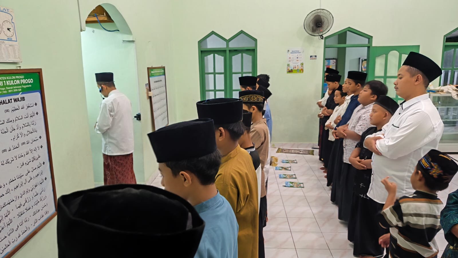 MIN 1 Kulon Progo menggelar salat tarawih bersama di Musala Al Kautsar pada malam Ramadan, Jumat (13/3/2026). Kegiatan ini diikuti oleh guru dan tenaga kependidikan (GTK) serta murid kelas V, dengan suasana yang sederhana namun terasa khusyuk.
