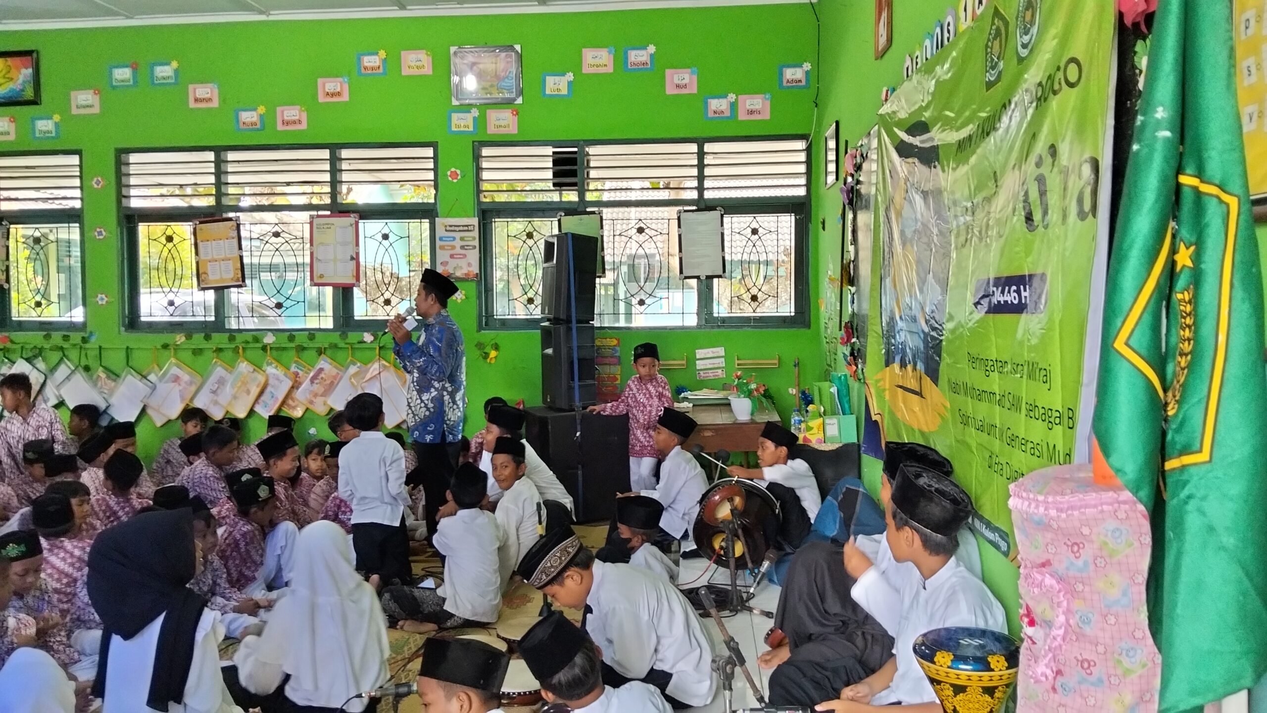 Kulon Progo – Suasana religius dan penuh kekhidmatan terasa saat tim Hadroh Al Musthofa MIN 1 Kulon Progo tampil memukau dalam pengajian peringatan Isra’ Mi’raj Nabi Muhammad SAW, Kamis (30/1/2025). Kegiatan yang digelar di ruang kelas 1 ini diikuti oleh seluruh keluarga besar madrasah, mulai dari siswa, guru, hingga tenaga kependidikan.